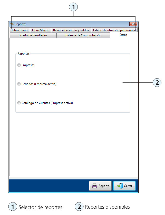 Seleccione el reporte que desee imprimir, luego presione el botón Reporte y el sistema lanzará la vista previa.