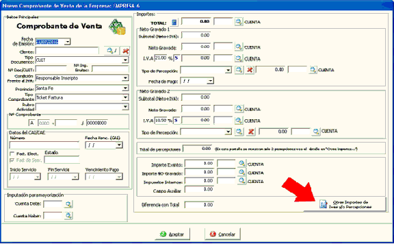 No ingresar ningún valor. Hacer click en Otros Importes de IVA y/o Percepciones.