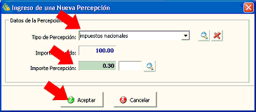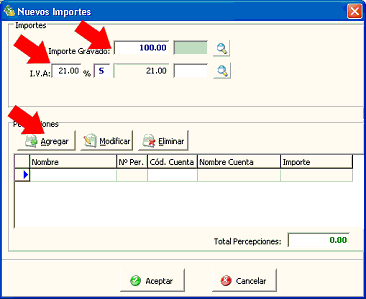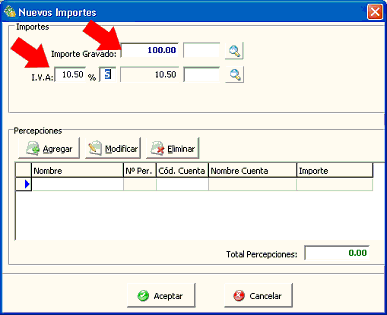 Si la percepción se encuentra configurada con su respectiva Alícuota, automáticamente calculará el importe. Caso contrario ingréselo manualmente.