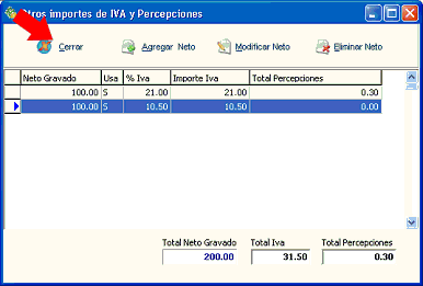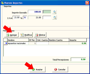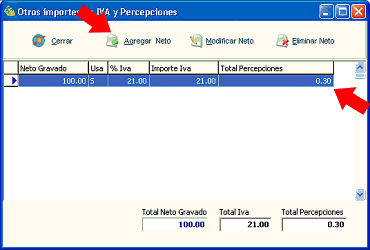 Para Agregar otra alícuota de IVA presione Agregar. (flecha roja)