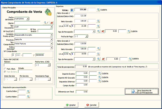 Carga de comprobante de Venta con más de una alícuota y percepciones