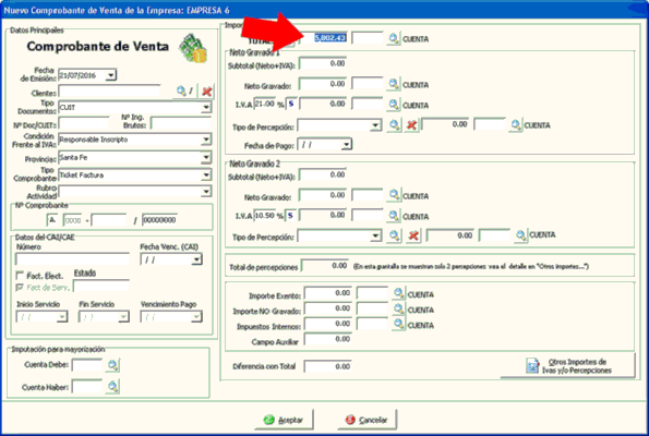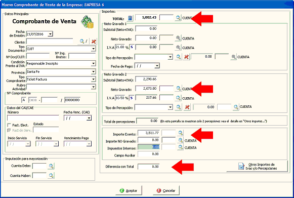 Ingrese Importe Exento: $3,511.77 y presione ENTER. Para finalizar presione Aceptar.