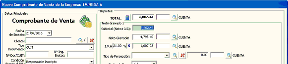Aquí ingrese el importe: $2073.00 y presione ENTER para que el sistema calcule la alícuota.