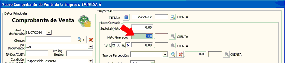 El sistema realiza los cálculos para el Neto Gravado 1.