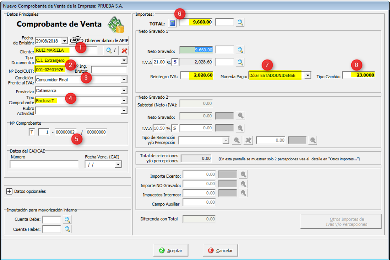 6-Tipo de cambio: se debe ingresar el valor del tipo de cambio que indica el comprobante.