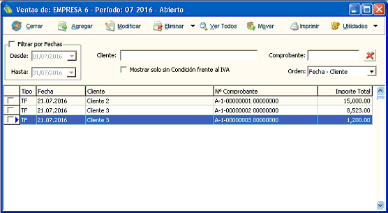 Mover: Podemos mover un comprobante de venta a otro período. Esto es muy útil en caso de equivocaciones.