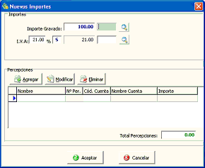Percepciones - Agregar: Presione para ingresar una nueva percepción al Neto Gravado actual.