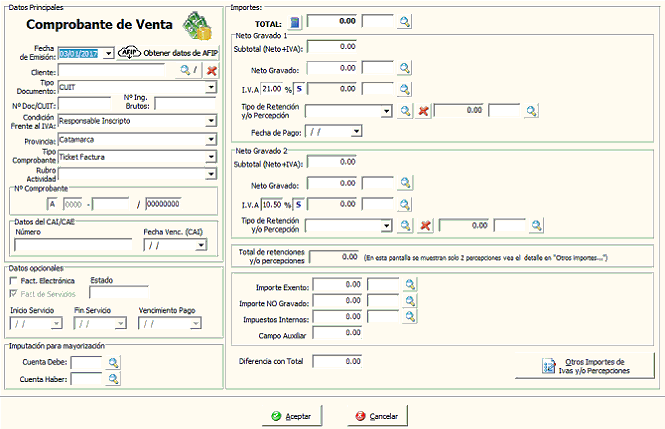 Nota: Si Ud. se encuentra ingresando un comprobante con solo una alícuota del 10.5%, puede modificar esta o ignorarla y saltar al Neto Gravado 2, ingresando importe cero y Enter en Neto Gravado 1.