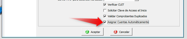 Luego deberá habilitar la opción "Asignar cuentas automáticamente” que se encuentra en Utilidades > Configuración.