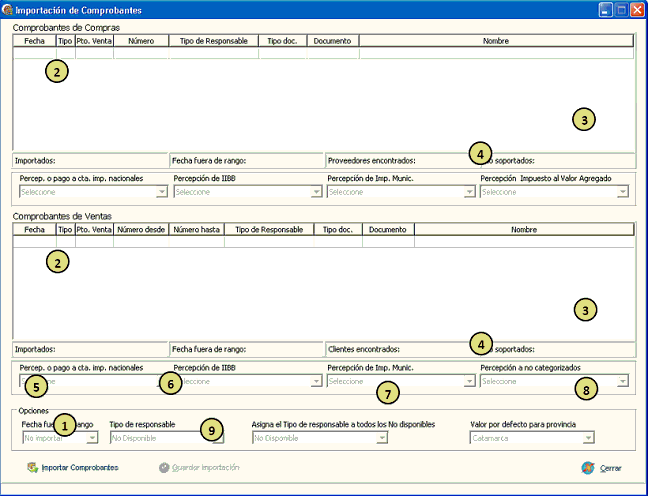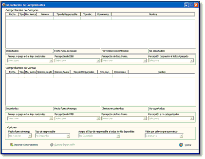Descripción de la ventana de importación de comprobantes