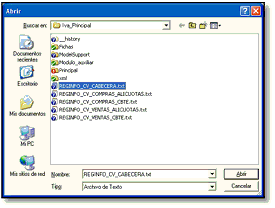Si posee el archivo “REGINFO_CV_CABECERA.txt”, selecciónelo y presione Abrir. Cargando este archivo el sistema verificará que se esté importando los comprobantes a la Empresa y Períodos correctos, no permitiendo que se importen a otra Empresa y Período. Automáticamente se cargará el resto de los archivos.
