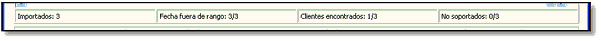 Aquí obtendrá la información de la cantidad de registros importados, Fuera de rango de fecha, Clientes encontrados y No Soportados.