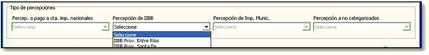 Las retenciones y percepciones vienen englobadas por tipo, por lo cual deberá seleccionar a cuál retención / percepción de las cargadas y tipificadas en el sistema se las asignará.