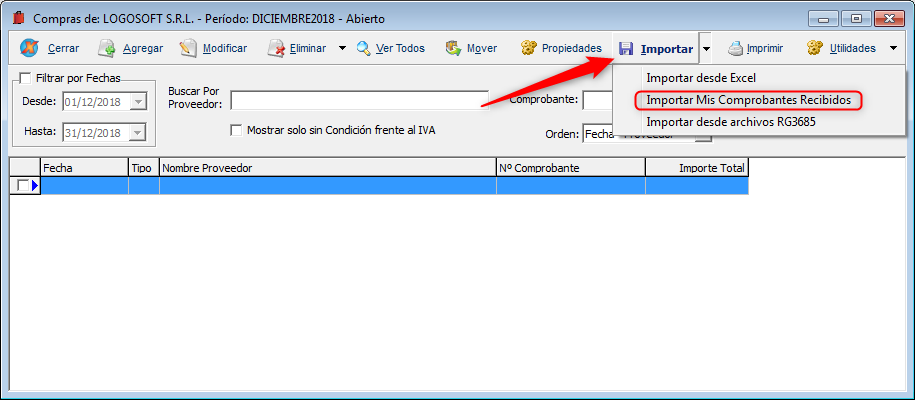 Importación de Mis Comprobantes Recibidos