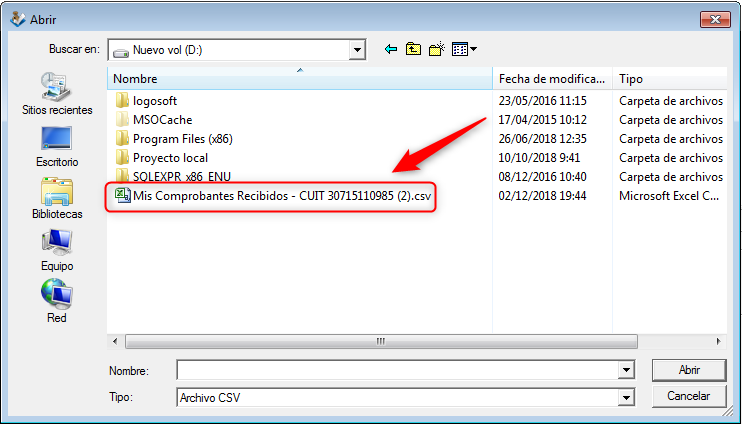 Seleccione el archivo generado en la web de ARCA: