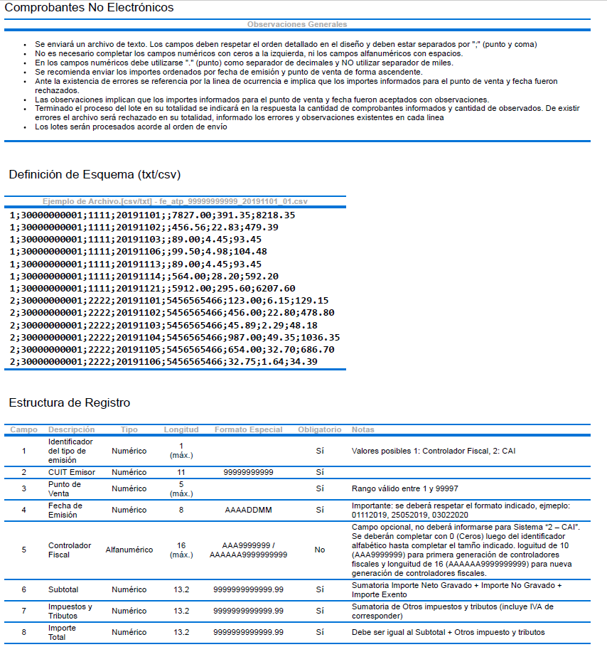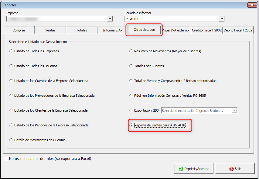 Exportación de comprobantes para ATP