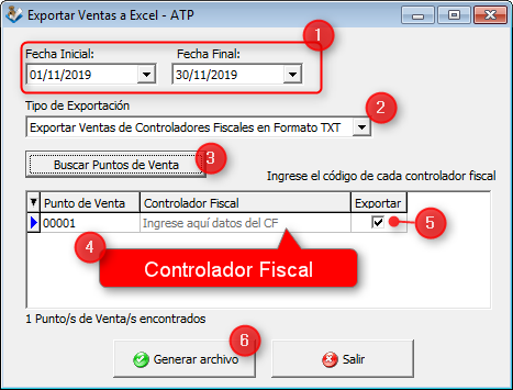Exportación de totales de ventas diarias por controlador fiscal
