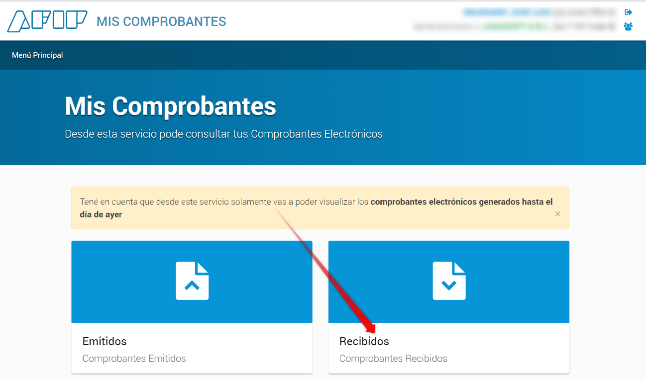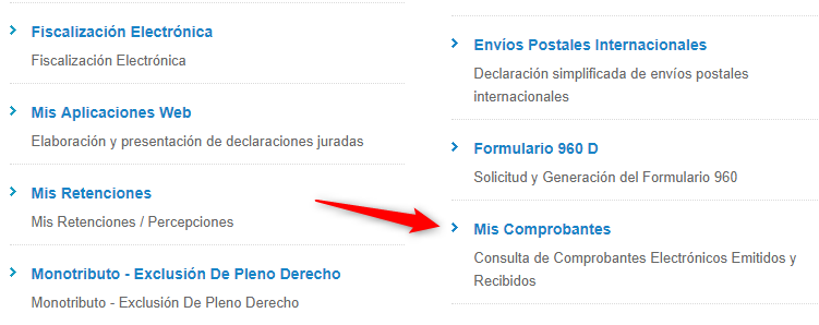 En primer lugar, debe obtener los archivos a importar, ingresando con clave fiscal, y seleccionando "Mis Comprobantes".