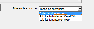 Todas las diferencias: Muestra todos los comprobantes existentes en Visual IVA y en ARCA (archivo SCV cargado).