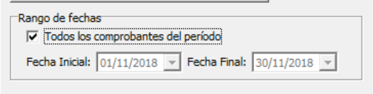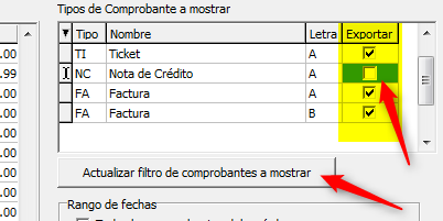 Además, permite seleccionar el o los tipos de comprobantes a exportar como así también un rango de fechas dentro del período seleccionado, permitiendo acotar la información a exportar.