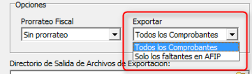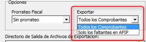 10 Seleccione exportar: “Todos los comprobantes” o “Solo faltantes en ARCA”.