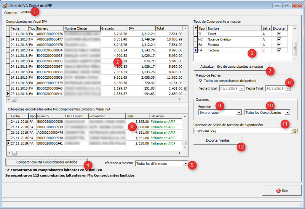 Para realizar la exportación al Libro de IVA Digital, Visual IVA permite realizar la comparación con los comprobantes electrónicos existentes en ARCA, permitiendo exportar solo las diferencias encontradas entre ARCA y los existentes en Visual IVA.