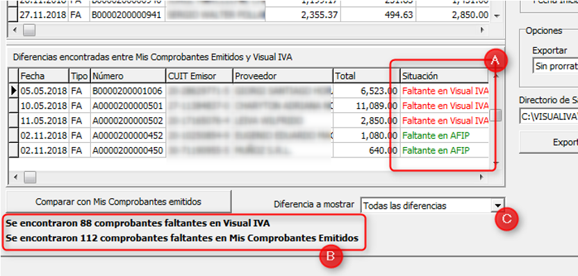 3 Listado de diferencias encontradas entre Visual IVA y ARCA, comparado con el archivo CSV de Mis Comprobantes Emitidos.