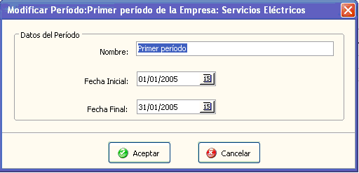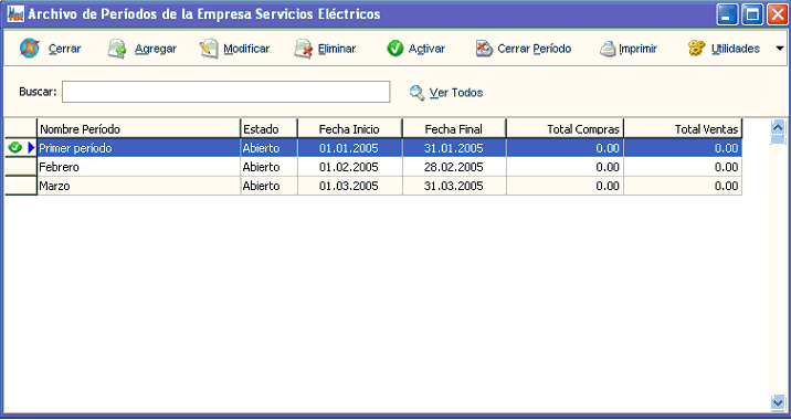 Este botón activa el período seleccionado para comenzar a trabajar. Puede activar una Período haciendo doble click con el mouse sobre el.