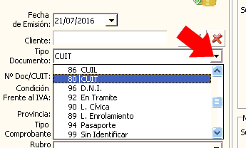 Tipo de documento, Número de CUIT, Número de Ingresos Brutos, Condición frente al IVA, Provincia y Rubro o Actividad del cliente se cargarán automáticamente, si este se encuentra en el archivo de clientes de la empresa.