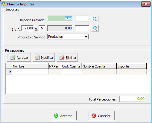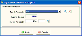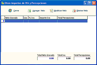 Percepciones - Agregar: Presione para ingresar una nueva percepción al Neto Gravado actual.