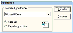 Exportar Período: Al elegir dicha opción se nos presenta la siguiente pantalla la cual nos permite exportar los comprobantes de venta de la empresa y período activos con distintos formatos.