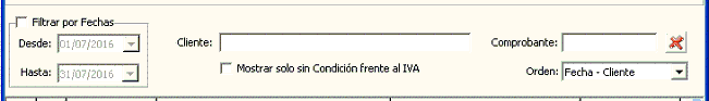 - Orden: Por defecto el listado de comprobantes se visualiza ordenado por Fecha, seleccione “Cliente – Fecha ” para ordenarlo por Cliente.
